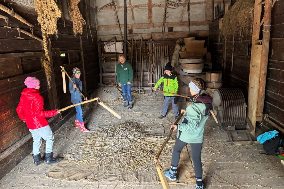 Am Freitag dem 17. Oktober war die Klasse 3a und 3b im Freilichtmuseum. Wir sind von der Homburgschule losgelaufen bis zum Freilichtmuseum. Dort hatten wir das Thema vom Korn zum Brot. Dort haben wir uns begrüßt. Dann haben wir das